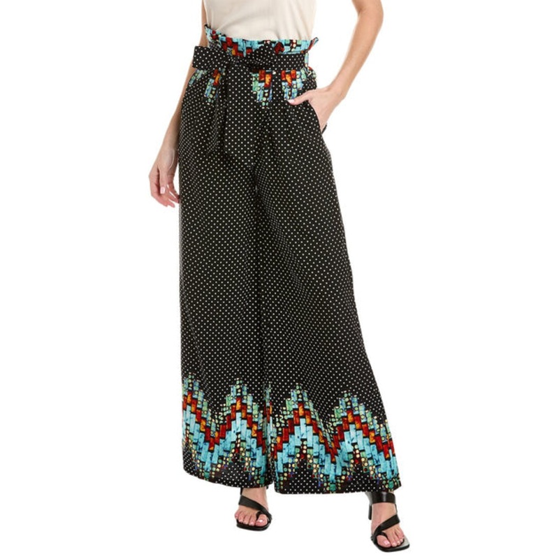- Paperbag Pant In Black Multicolor With Pleated Front,, Elasticized Back Waist, Tie Straps, And Side Seam Pockets