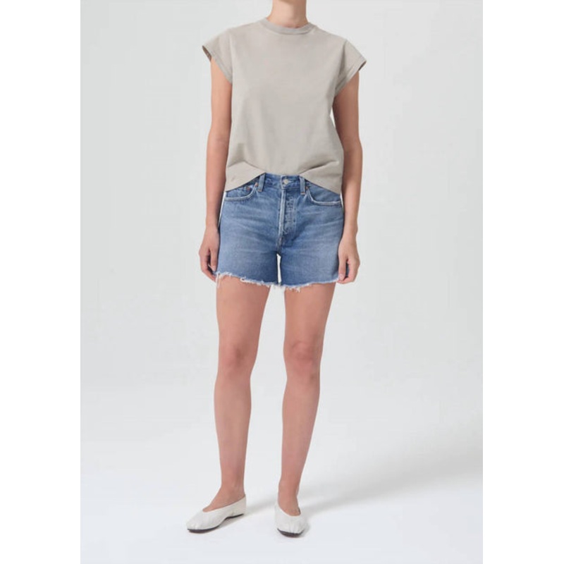 Not only cute but extremely comfortable. The jean shorts you will be reaching for all season long.A relaxed rise and a slightly longer inseam. Fit is true to size. Closure – Button FlyRise – 11 1/4″Inseam – 4 1/2″Leg Opening – 24 1/2″Model is 5’10” and is wearing a Size 27. Machine wash cold inside out with like colors. Do not bleach. Tumble dry low.